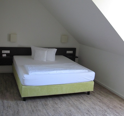 ein Bett in einem Hotelzimmer